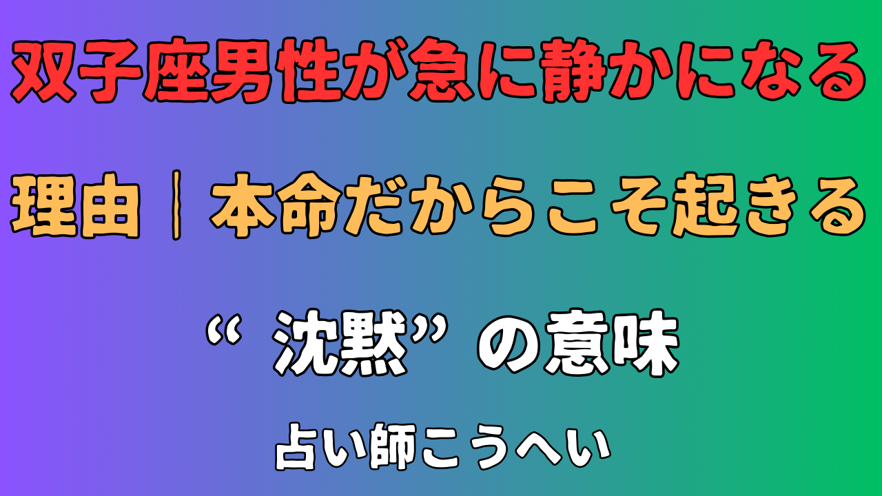 双子座男性が急に静かになる理由|本命だからこそ起きる“沈黙”の意味|占い師こうへい